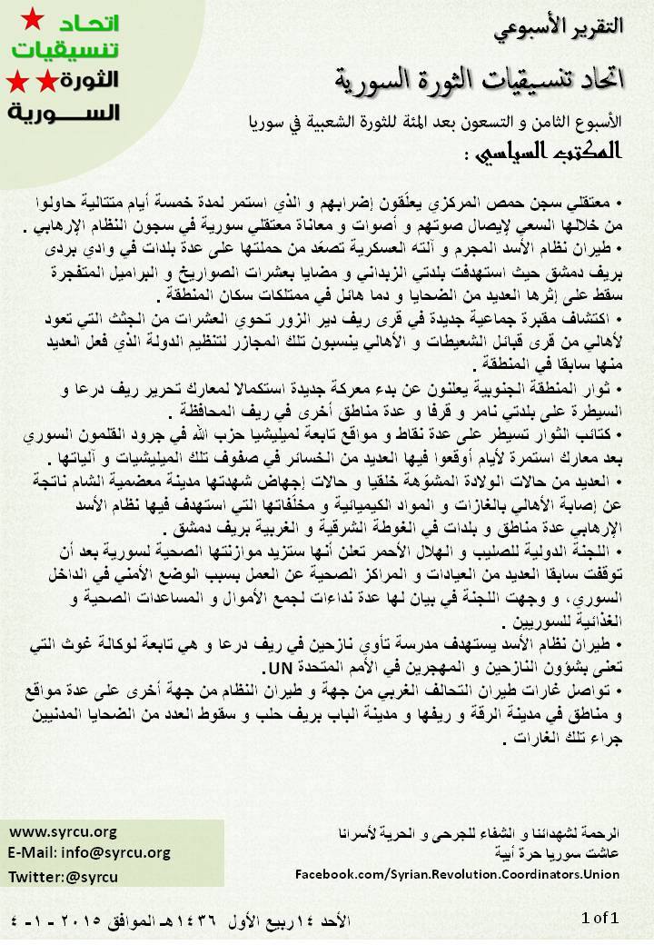 التقرير الاسبوعي جديد الاحداث السياسية , الاسبوع 198 للثورة