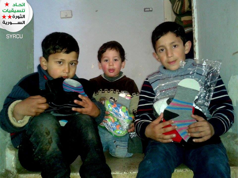 ضمن حملة ولو بالقليل التي أطلقاها اتحاد تنسيقيات الثورة السورية ,  قام أعضاء اتحاد التنسيقيات في الوعر بحمص بتوزيع أحذية وطواقي على أطفال داخل الحي المحاصر .