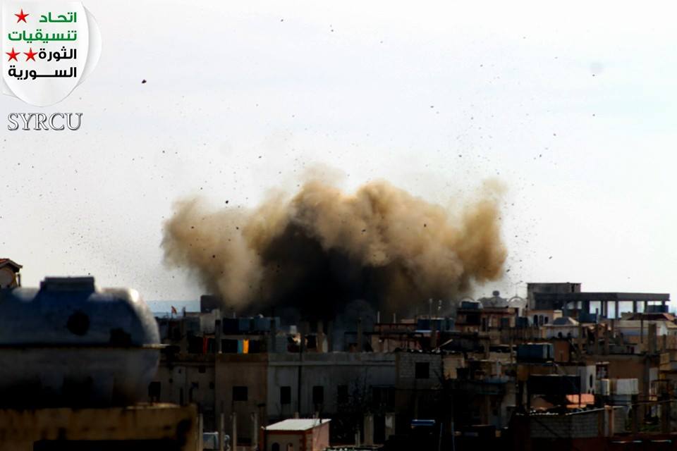 في غضون ذلك أفاد عضو اتحاد تنسيقيات الثورة " ابو صدام الحوراني " بتعرض بلدتي المزيريب واليادودة لقصف جوي ومدفعي ، تزامناً مع قصف صاروخي تعرضت له بلدة النعيمة ومناطق عدة في درعا البلد .
