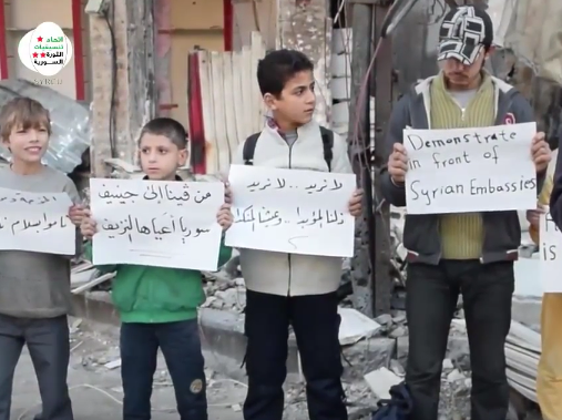 وقفة احتجاجية موجهة للعالم , كفاكم صمتاً على جرائم ال#أسد بحق المدنيين.!