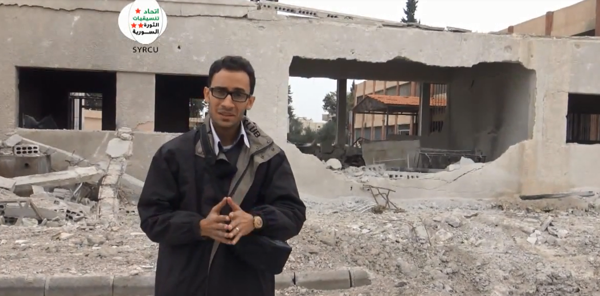 في الفيديو يتحدث الناشط الاعلامي الناطق بإسم إتحاد تنسيقيات الثورة #يوسف_البستاني عن المدرسة المستهدفة من قبل الطيران الحربي والتي تحوي بداخلها قرابة 20 عائلة من منطقة المرج , استشهد بعضهم ونقل الباقون الى المشافي الطبية الميدانية للعلاج من الاصابات التي لحقت بهم نتيجة القصف.