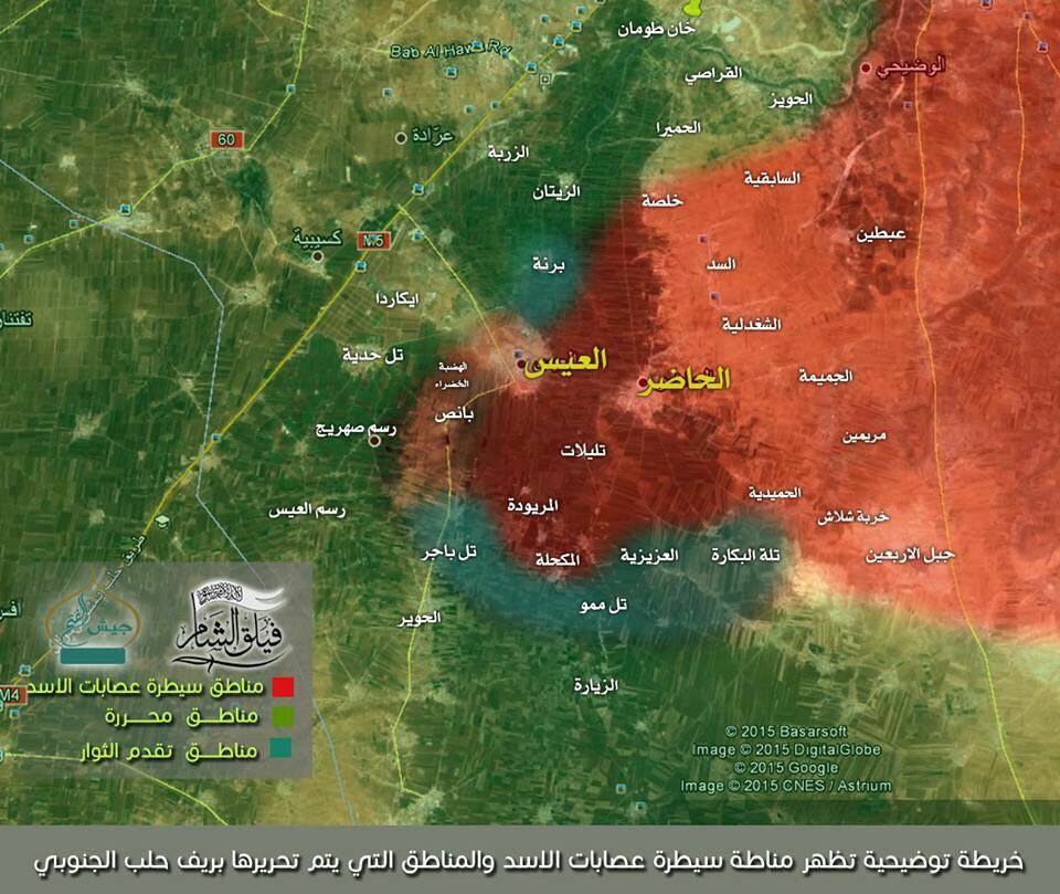 وفيما أكدت المعلومات ، نشر خريطة من قبل فيلق الشام وجيش الفتح توضح فيها المناطق المحررة ومناطق تقدم الثوار والمناطق الواقعة تحت سيطرت قوات الأسد.