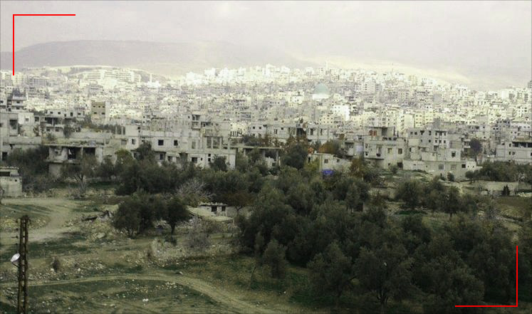 "فقدت المواد الغذائية من معظم محلات المدينة، وما تبقى منها شهد ارتفاعاً كبيراً في الأسعار، ووصل أسعار بعض المواد إلى 3 أضعاف أو أكثر عن العاصمة دمشق والتي لا تبعد سوى كيلو مترات عن المدينة".