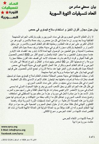 بيان صحفي حول المجازر الاخيرة لنظام و مبادرة الابراهيمي