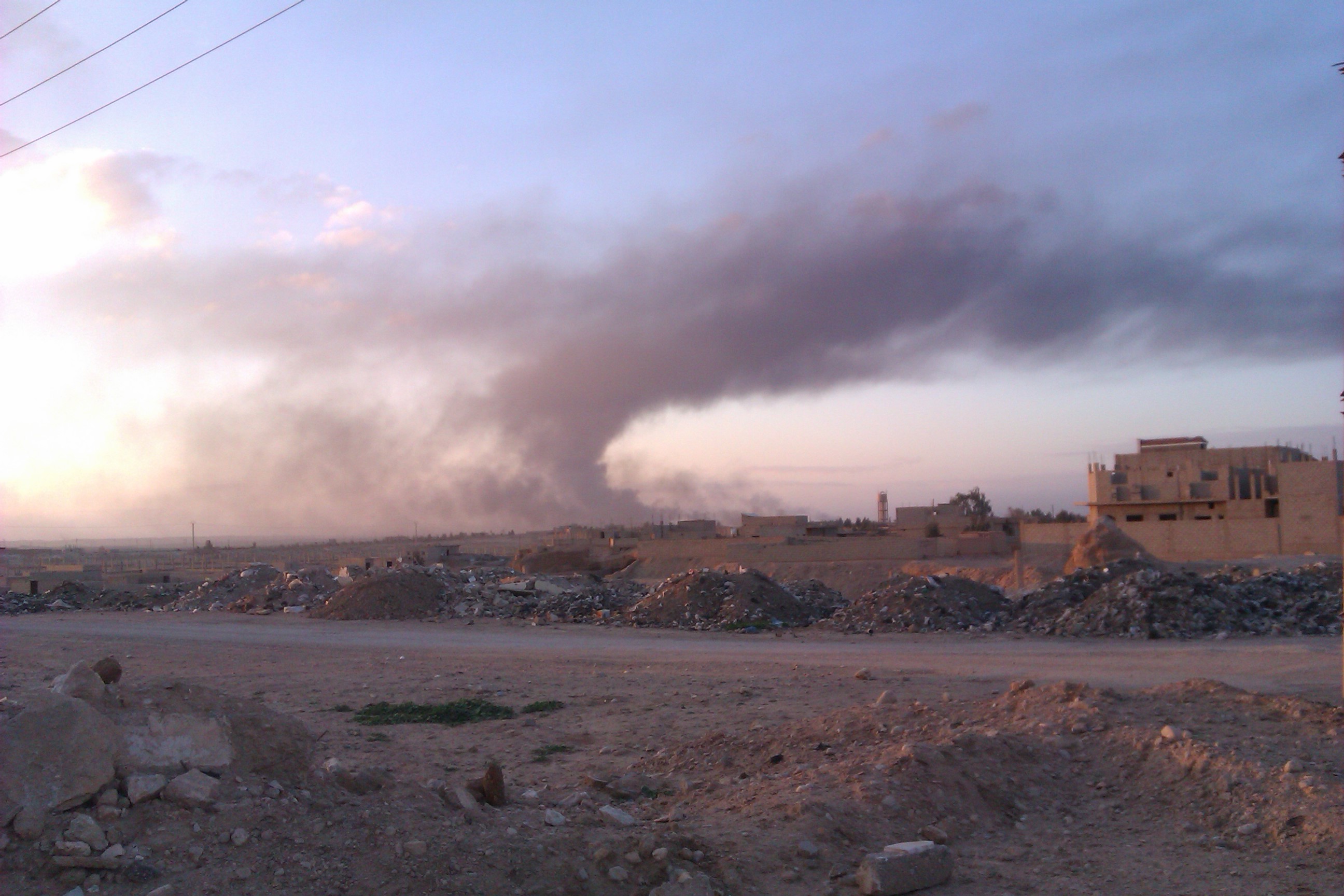 سحب من الدخان الأسود تمتلأ بها رئة فضاء كان من أنقى فضاءات سورية .