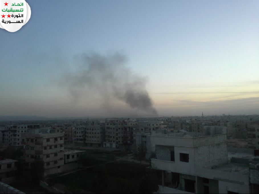 نشوب حريق داخل فرع "المخابرات الجوية في حلب "بعد استهداف الفرع من قبل الثوار بقذائف الفوزديكا