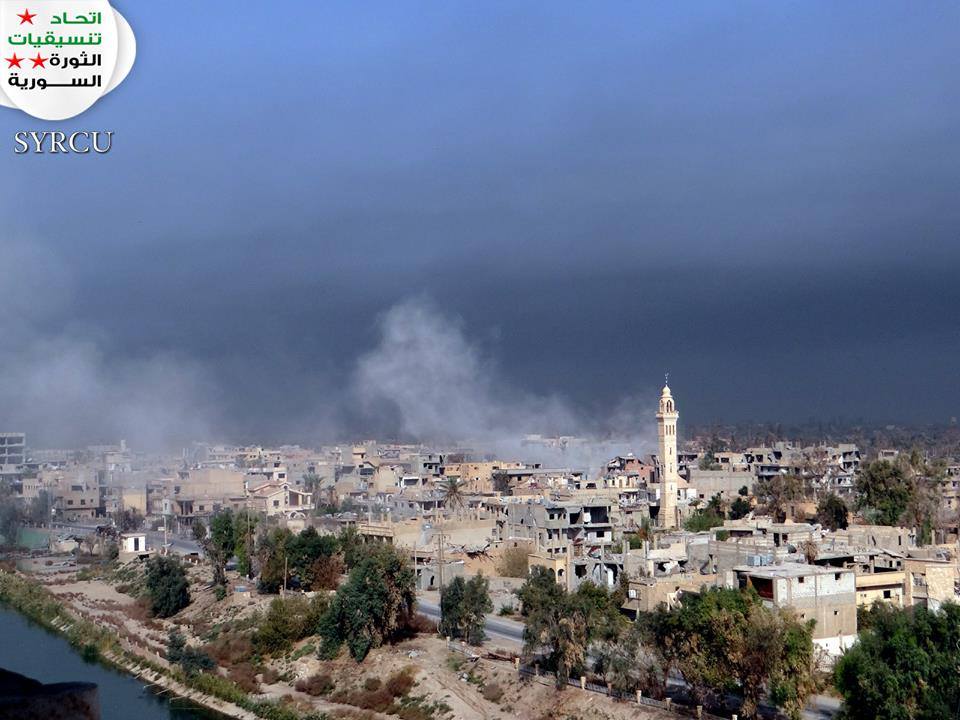 فيما استهدف الحر مواقع لقوات النظام في حي الرصافة بمدفع هاون موجه.